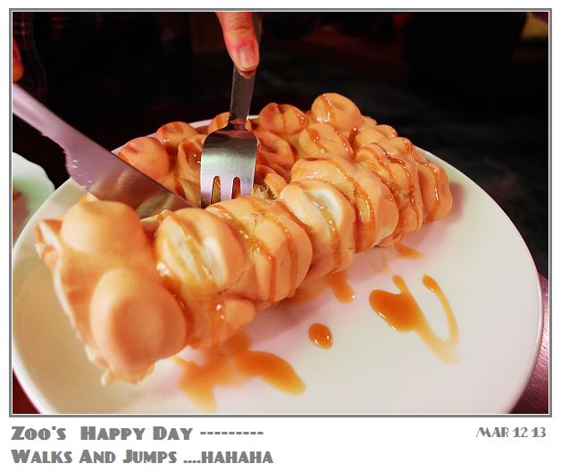 表皮考的脆脆的 咬進去是暖暖的~我選了焦糖口味 加上去 感覺還滿像在吃鬆餅的啦!!哈