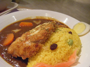 好像叫 咖哩嫩雞 的樣子 他們的咖哩甜甜的 我覺的還不錯